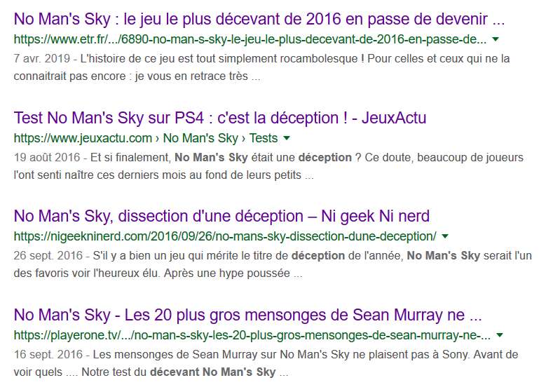 Prenons aussi l’exemple du jeu vidéo No Man’s Sky, qui avait suscité d’énormes attentes, mais aussi des déceptions en masse lorsque le jeu est sorti :