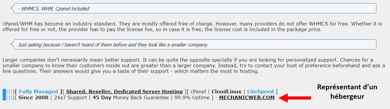 C’est le cas par exemple pour les services d’hébergement web, secteur où le forum Webhostingtalk a la plus grande communauté du web.