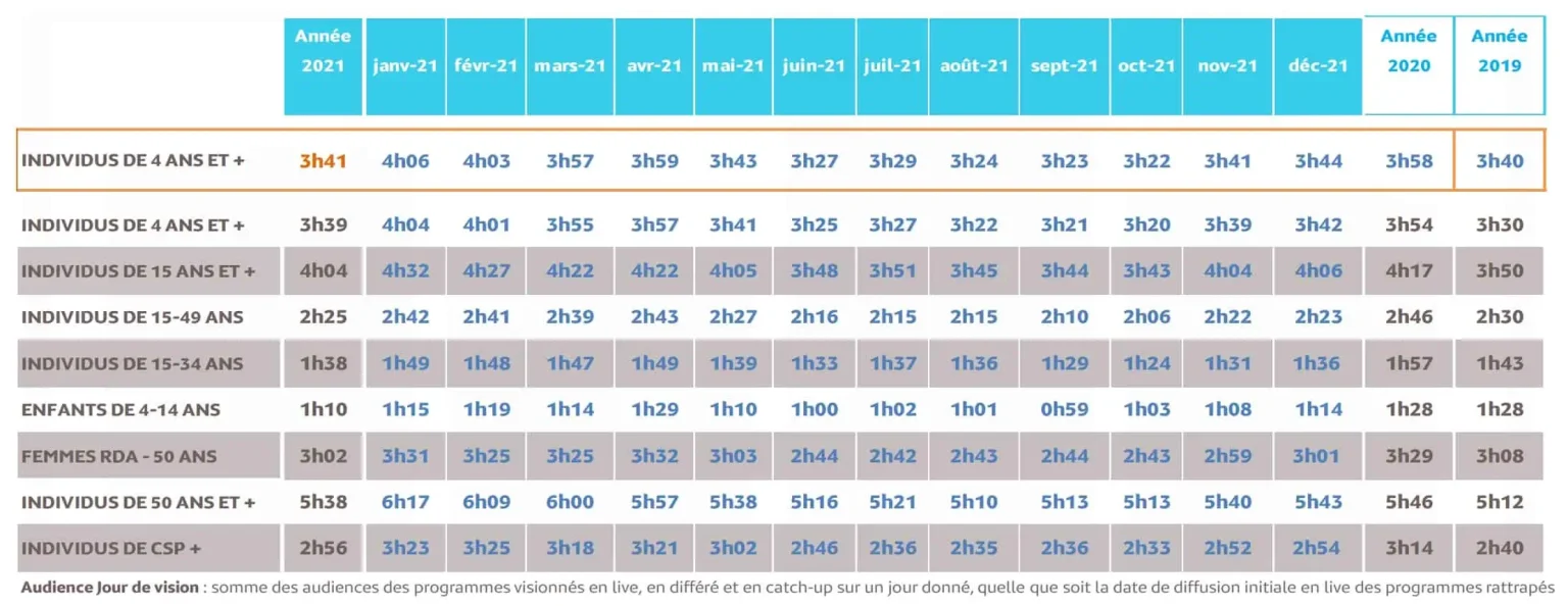 PDA des principales chaînes françaises en 2021 – De 3h à 33h du matin – 4 ans et plus