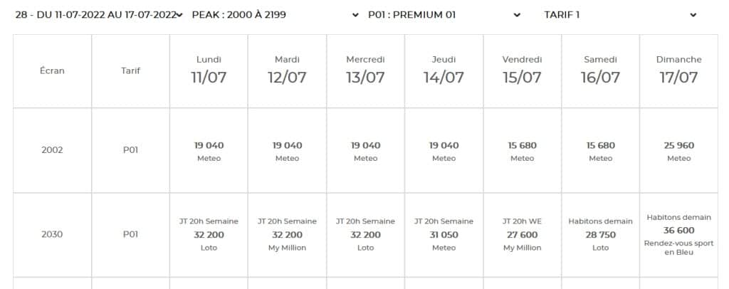 - La chaîne et le programme concernés par les écrans publicitaires.