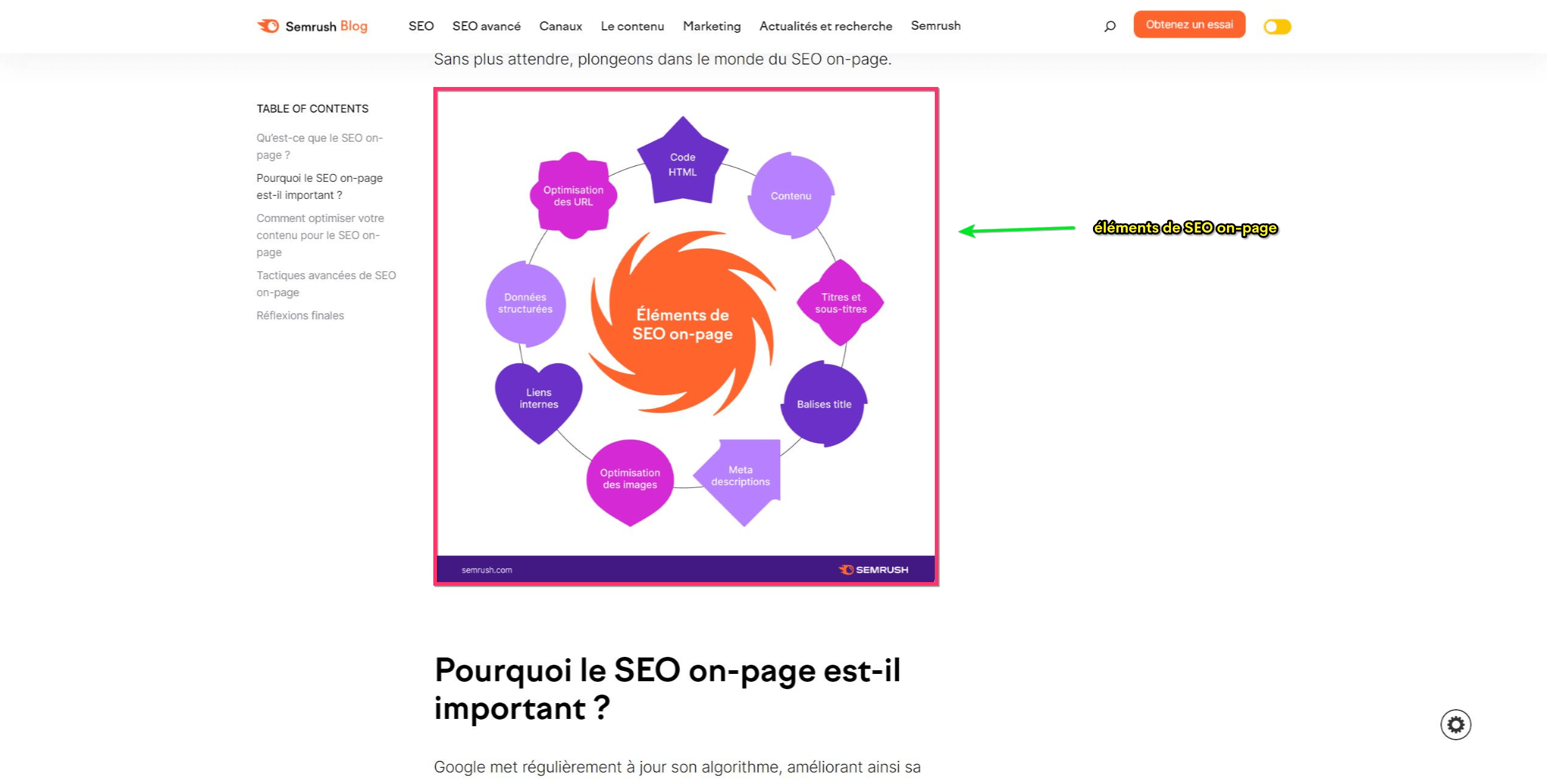 Le référencement on-page est essentiel car il aide les moteurs de recherche à comprendre le contenu et la pertinence d’une page web.